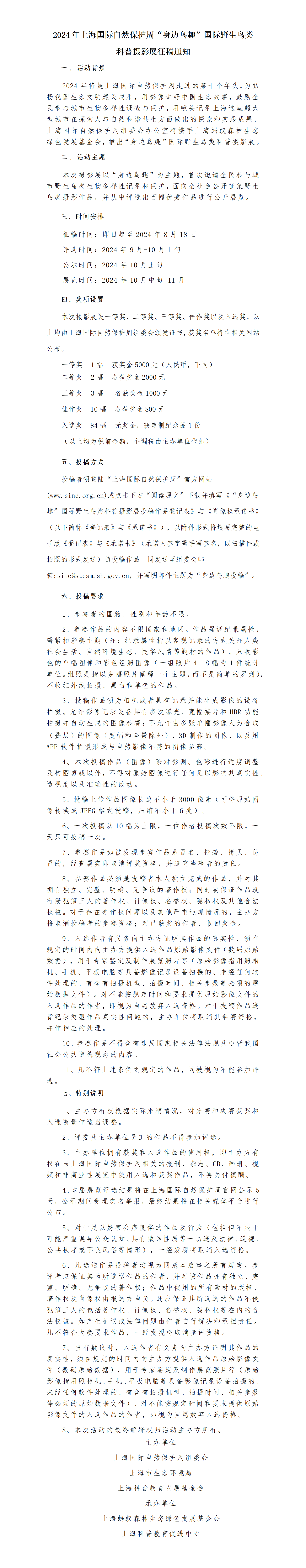 上海市科学技术委员会 上海市生态环境局 上海市教育委员会 上海市绿化和市容管理局 上海市科学技术协会 上海科普教育发展基金会 主办