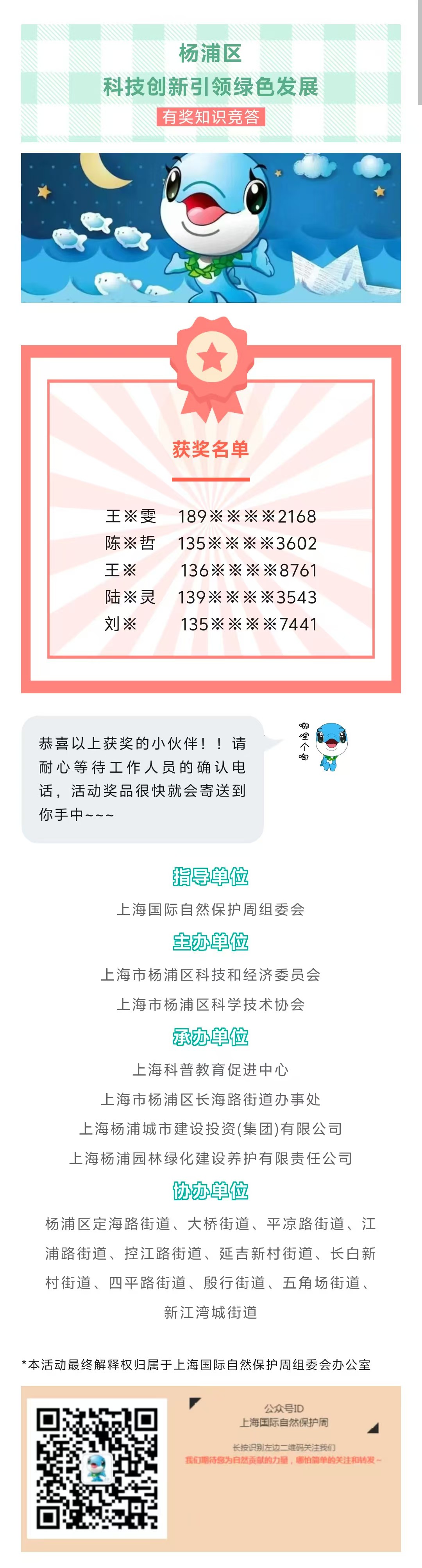 • 杨浦区“科技创新引领绿色发展”有奖知识竞答获奖名单