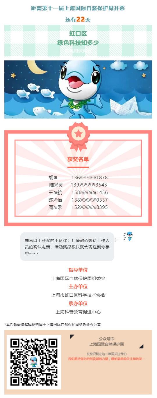 上海市科学技术委员会 上海市生态环境局 上海市教育委员会 上海市绿化和市容管理局 上海市科学技术协会 上海科普教育发展基金会 主办