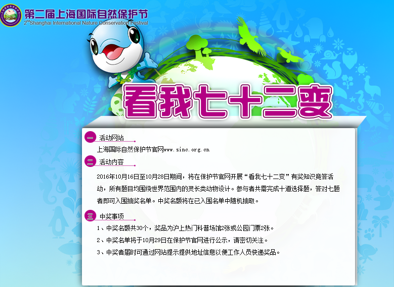 作为本届自然保护周九大活动之一——“i自然”旅游体验活动将在线上线下同时开展,本届上海国际自然保护周将于2016年10月22-29日举办, “i自然”旅游体验活动旨在引导旅行者在走进自然、体验自然的同时去深入了解和爱护自然,学会在不同的时间去不同的地方看风景。“i”是英文的我,“i自然”即我和自然;“i”读音同中文“爱”,“i自然”即自然是要我去爱护的;旅游无疑是件赏心悦目的事,而“i自然”的你就是那个触动心弦的好风景。