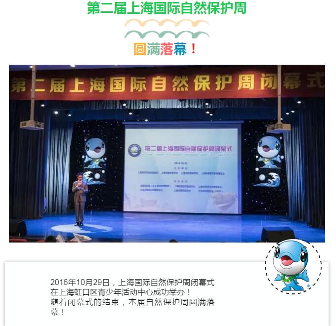 “上海国际自然保护周”是上海举办的一场有国际影响力的、以保护自然为主题的大型科普公益活动,由上海市科学技术委员会、上海市教育委员会、上海市环境保护局、上海科普教育发展基金会共同主办,以“记录自然、感受自然、揭秘自然、呵护自然”为永恒主题。