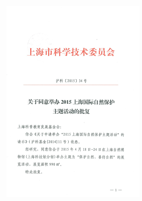 • 关于同意举办2015上海国际自然?;ぶ魈饣疃呐?/li>